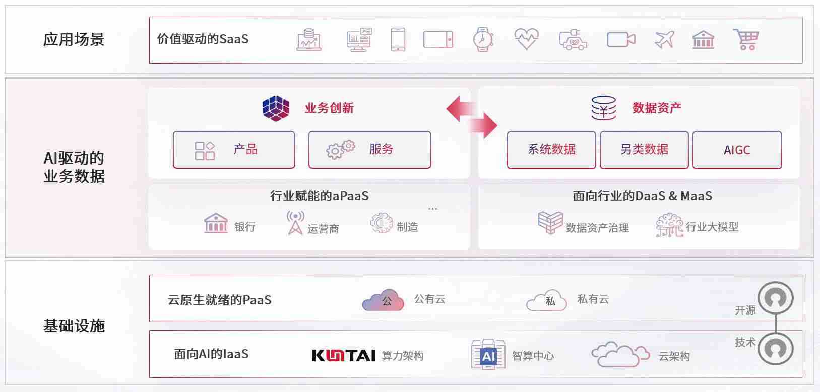 数字时代,,,,围绕企业数字化转型的关键要素,,,杏宇娱乐数码开创性的提出数云融合战略和技术体系框架,,,着力在云原生、、数字原生、、、、AI原生和信创产业上架构产品和服务能力,,,为处在不同数字化转型阶段的快消零售、、、汽车、、、金融、、医疗、、政企、、教育、、运营商等行业客户提供泛在的敏捷IT能力和融合的数据驱动能力,,,,构建跨界融合创新的数字业务场景和新业务模式,,助力企业级客户建立面向未来的核心能力和竞争优势,,,全面推动社会的数字化、、智能化转型升级。。。。